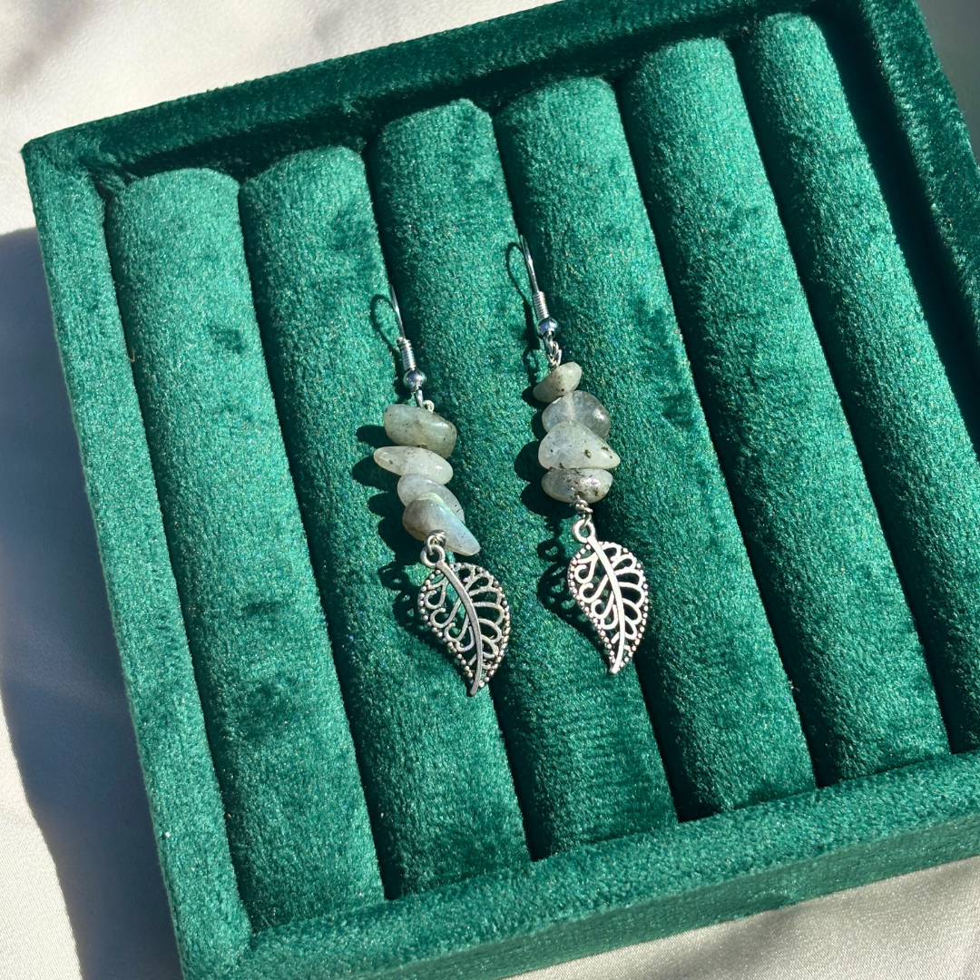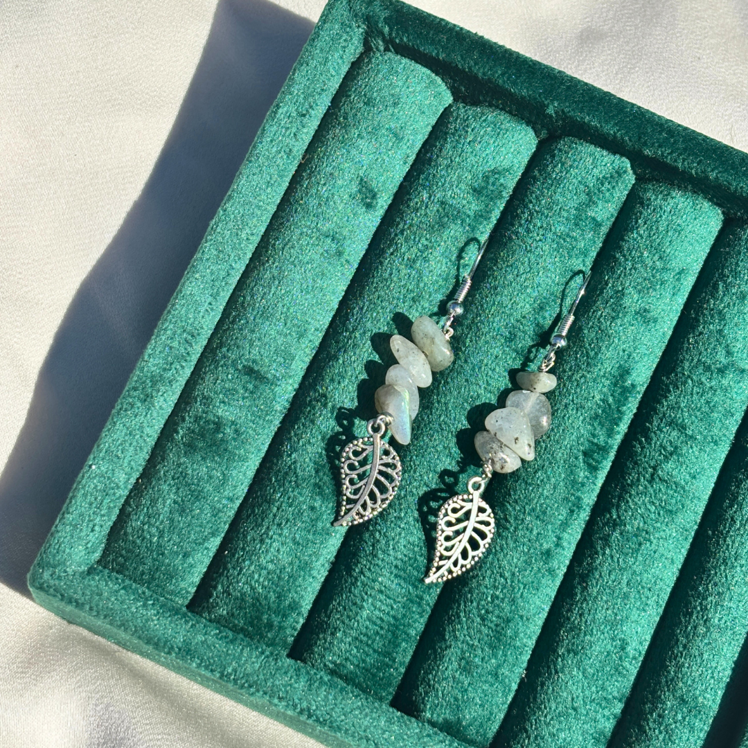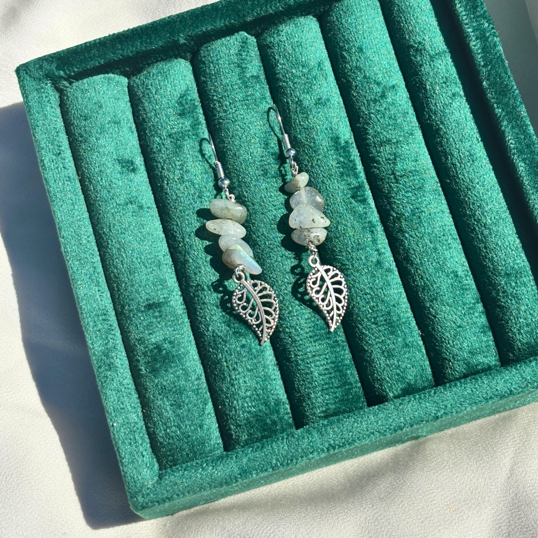 Raw labradorite stones meet intricate silver work, uniting earth and artistry in timeless harmony.